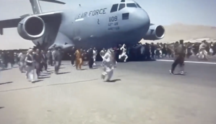 Crowds converged on the airport seeking to escape, including some clinging to a U.S. military transport plane as it taxied on the runway, according to footage posted by a media company.