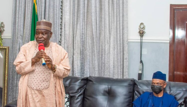 Plateau Deputy Governor, Professor Sonni Tyoden, speaks upon receiving Kaduna Governor, el-Rufai, seated