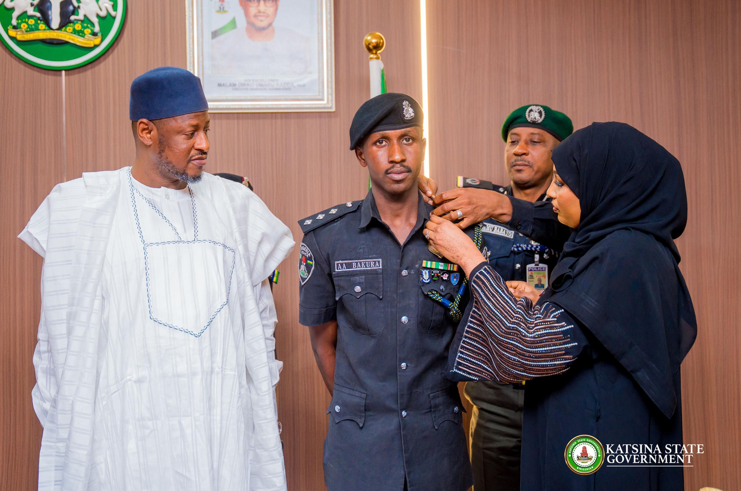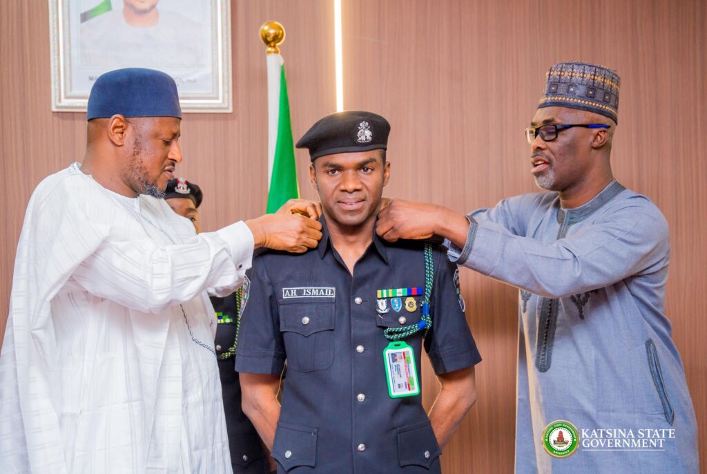 Katsina State Governor, Malam Dikko Umaru Radda, Monday decorated his Aide-de-Camp (ADC), Hassan Bello, with his new rank of Deputy Superintendent of Police (DSP).
