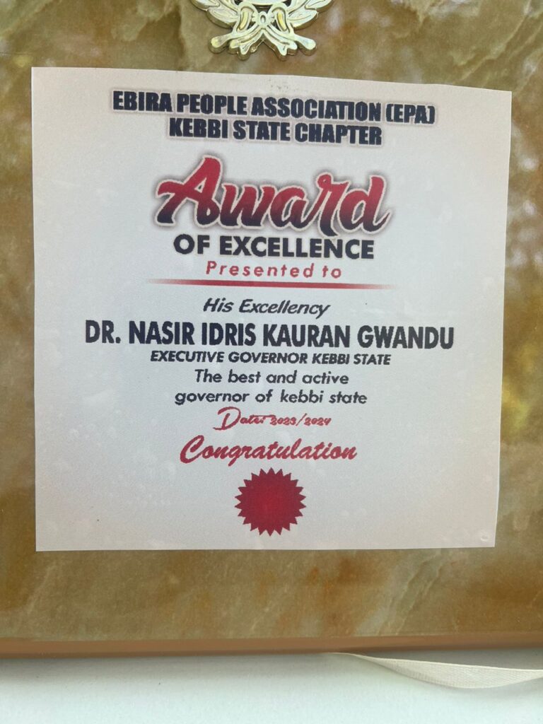 The Ebira People’s Association in Kebbi state has conferred an Award of Excellence to Governor Nasir Idris in recognition of his benevolence to non indigenes besides protecting their lives and property.