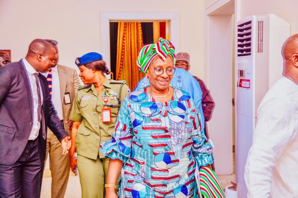 Former Minister of Women Affairs Mrs Pauline Tallen, right, Governor Yahaya Bello, centre, and others during the inauguration of the Governorship Campaign Council in Kogi State.