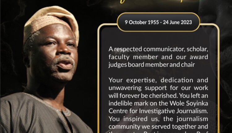 The board of trustees and management of the Wole Soyinka Centre for Investigative Journalism (WSCIJ) join the global community to mourn the loss of Lai Oso, the stellar professor of Mass Communication. A long-time supporter of our work at the WSCIJ, Professor Oso served on the faculty of many of our training programmes and was a distinguished member of the judges’ board of our flagship award, the Wole Soyinka Award for Investigative Reporting (WSAIR), for a decade.