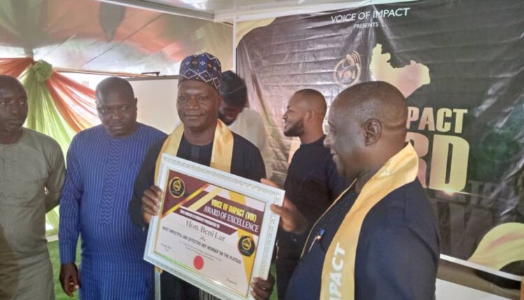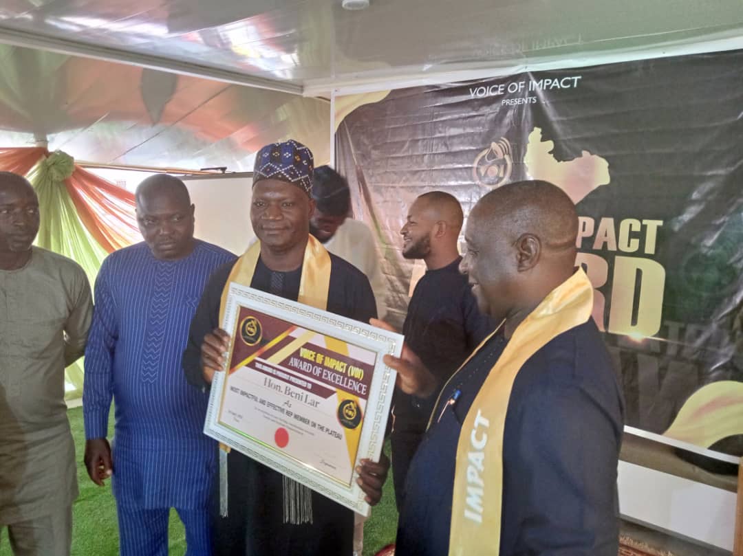 The award was betowed on Honourable Lar at the De-Bridge Hotel in Jos by the “Voice of Impact Ambassadors” whose membership cut across the 17 Local Government Areas in state.