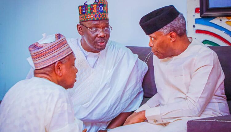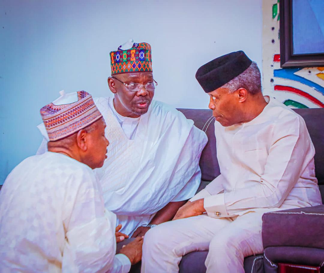 Vice President Osinbajo, right, condoles Governor Sule, centre