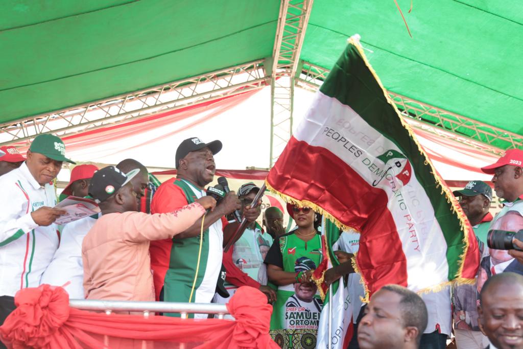 A mammoth crowd of Peoples Democratic Party, (PDP) supporters Tuesday, November 29, 2022 thronged the JS Tarka Stadium, Gboko to witness the flag-off of the Benue North-West Senatorial district campaigns for 2023 elections.