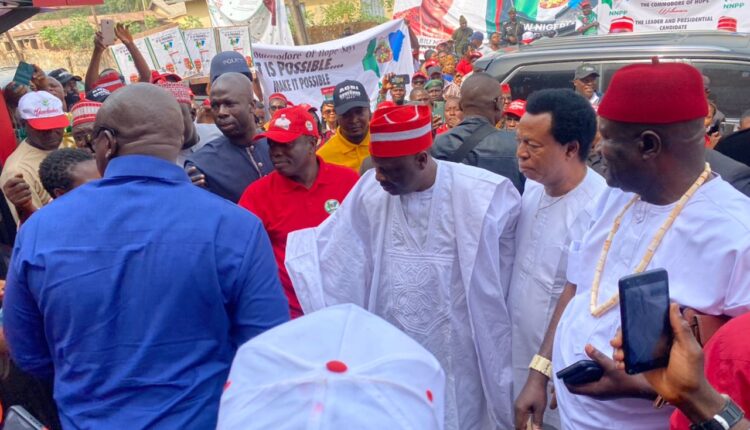 Mammoth crowd welcome NNPP presidential candidate, Senator Kwankwaso to Delta to open Aniocha Oshimili Reps candidate campaign office