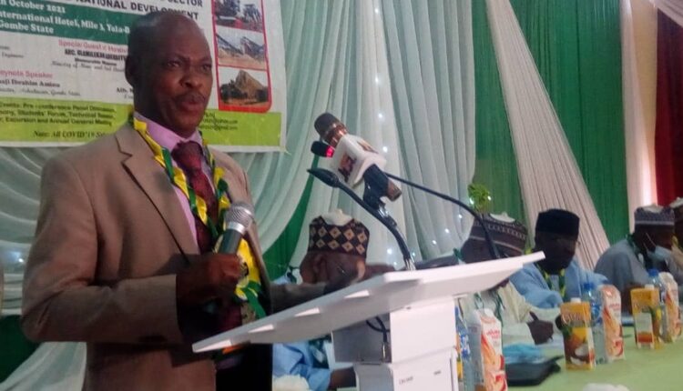 Professor Benson S Jatau, National President of NSME, addresses participants at its AGM held in Gombe