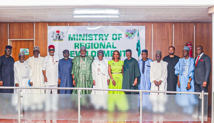 The Minister of Regional Development, Engr. Abubakar Momoh, alongside the Minister of State, Alh. Uba Maigari, on Wednesday, 5th November 2025, held a strategic meeting with the Chairmen of Boards and Managing Directors of the seven Regional Development Commissions at the Ministry’s Headquarters in Abuja.