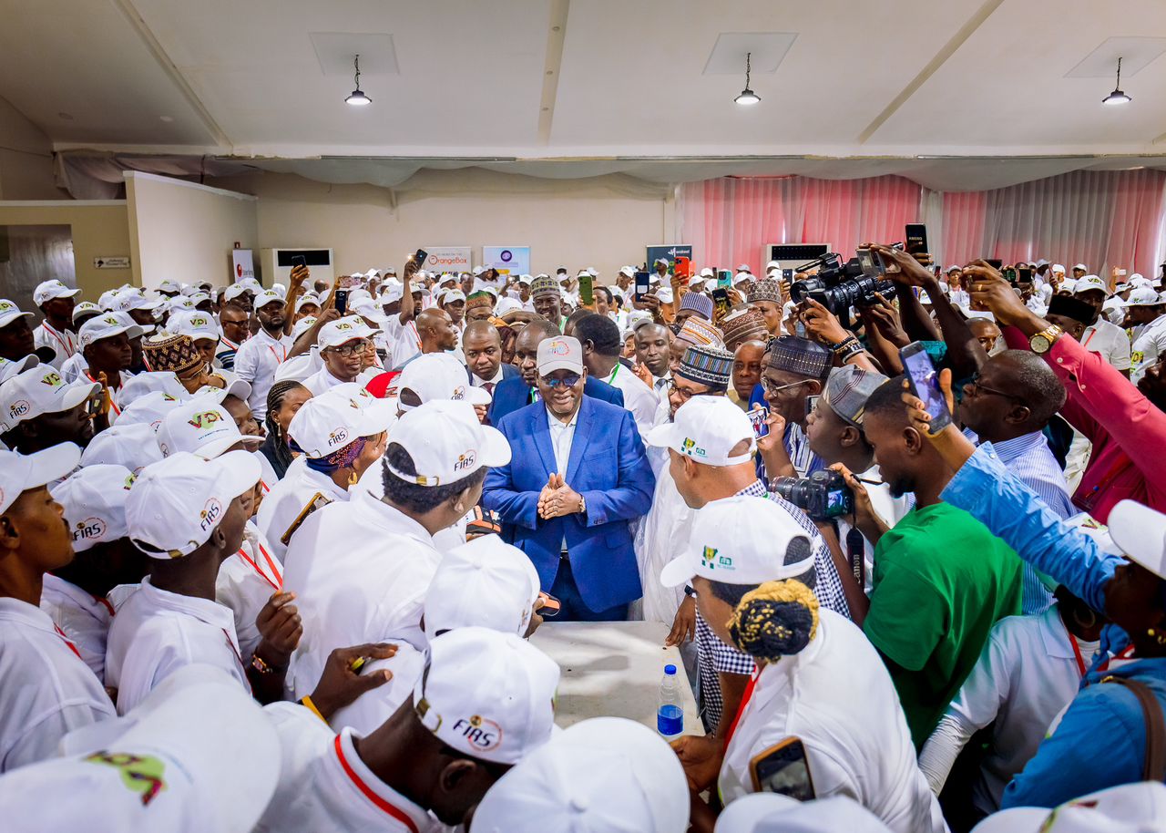Executive Chairman, FIRS, Muhammad Nami, surrounded by Market Traders Association of Nigeria enumeration vendors at the stakeholder engagement meeting between the FIRS and Market Traders Association of Nigeria in Lagos.