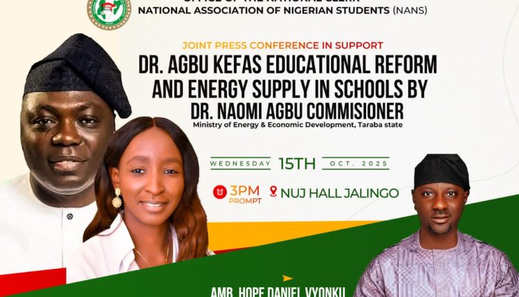 NANS commends Taraba Gov. Agbu, Energy Commissioner for educational reforms and power initiatives