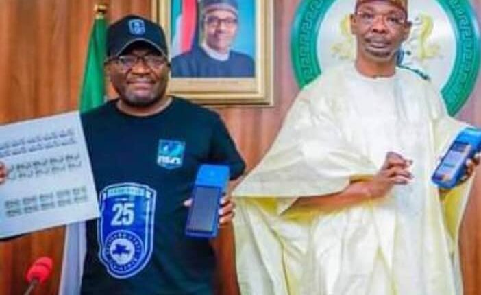 Ahmed Muhammad Yakubu with Governor Sule, right