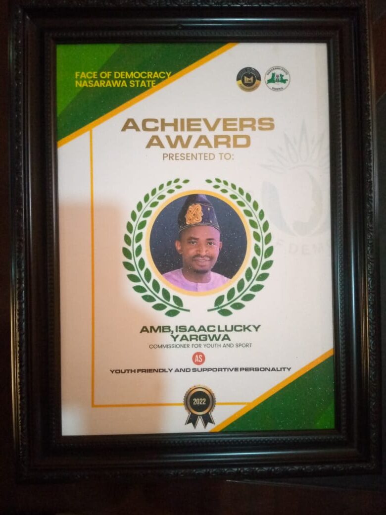Nasarawa State Commissioner for Youth and Sports Development, Amb. Lucky Isaac Yargwa, on Tuesday, was presented with the Achievers’ Award as “Youth-Friendly and Supportive Personality of the Year.”