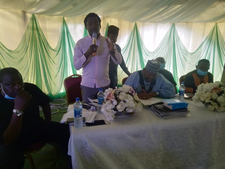 Mr Joseph Edgar, Chief Executive Officer, Duke of Shomolu Productions addressing the creative industry stakeholders during a dialogue session organised by the National Theatre on Wednesday, in Lagos.