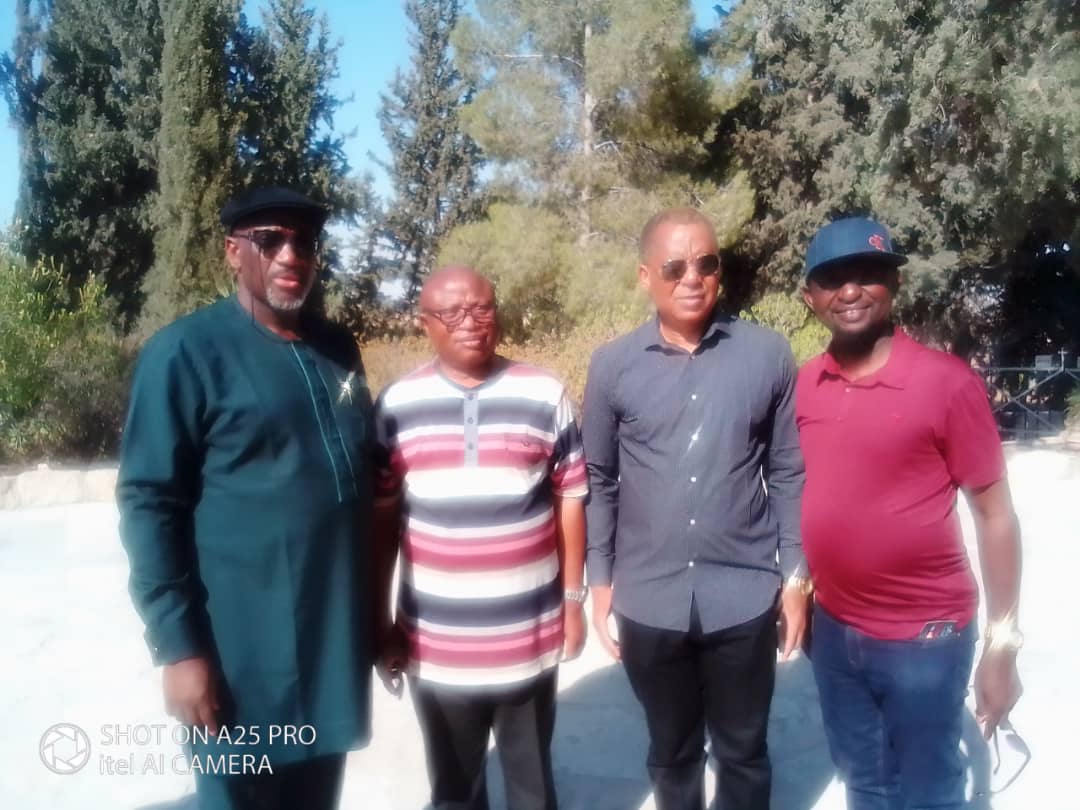 From left: The Chairman, Nigerian Christian Pilgrim Commission, Rev. Yomi Kasali, Barrister Funso Olukoga, the Ex-Officio member representing CBN on NCPC Board, Mr John Attah and the Head, Media and Public Relations, NCPC, Celestine Toruka at Shepherd’s Field, Bethlehem,during the ongoing Christian Pilgrimage exercise. Photo credit: Courtesy NCPC media unit