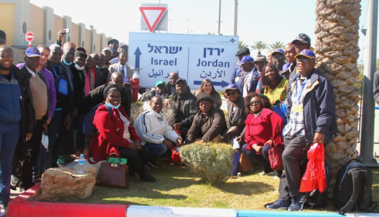 Executive Secretary, Nigerian Christian Pilgrim Commission, Rev. Dr Yakubu Pam with pilgrimage managers arriving Jordan from Israel for the State of Readiness Visit preparatory for the 2021 Main pilgrimage Q1 this year