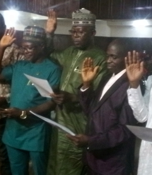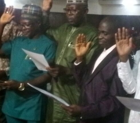 Chairman of AFAN FCT chapter, Hon. Ifaimu Dauda, second from left, with other officers being sworn in
