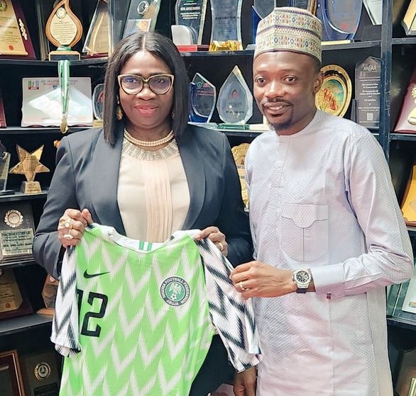 Abike Dabiri-Erewa with Super Eagles Captain, Ahmed Musa, right