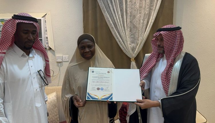 Conferring the award on her in Saudi Arabia, the Registrar of the institution,