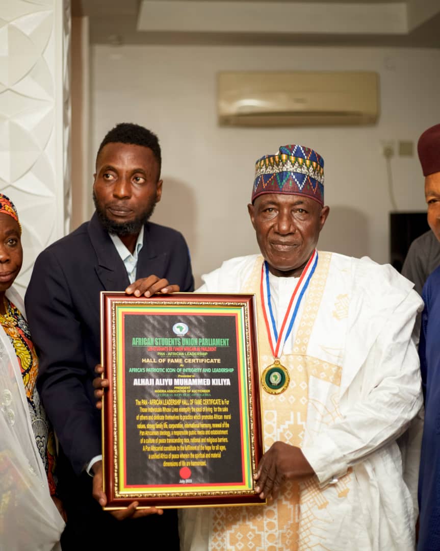 Nigeria Association of Auctioneers President, Alhaji Kiliya receives African Students’ Union Parliament Award