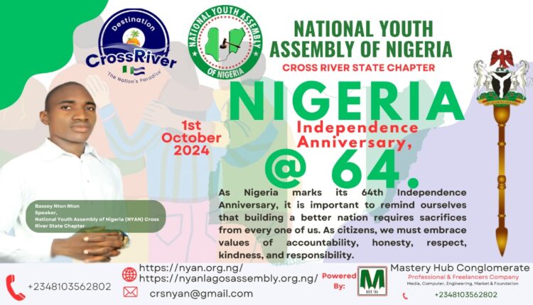 “As we celebrate Nigeria at 64, let’s keep working together in unity, maintaining our focus on grassroots sensitisation and youth engagement. Cross River State is our home, and it is up to us to ensure a prosperous future for all. Great NYAN! My Voice, My Power. Best regards, Rt. Hon. Bassey Nton Nton