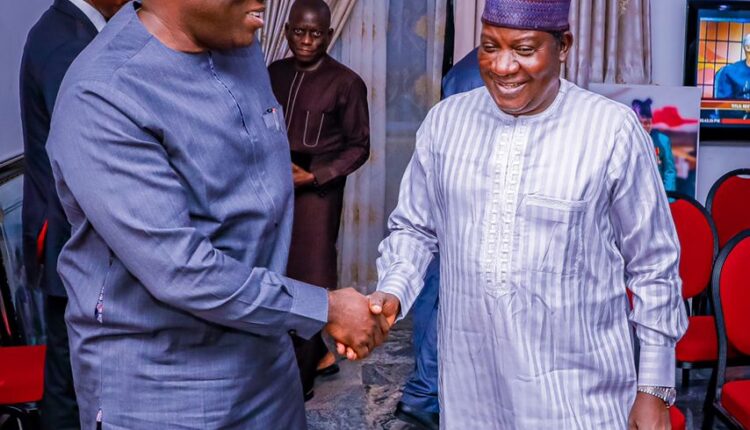 Chairman, Nigerian Governors Forum and Ekiti State Governor, Dr. Kayode Fayemi and Plateau State Governor, Simon Lalong, right