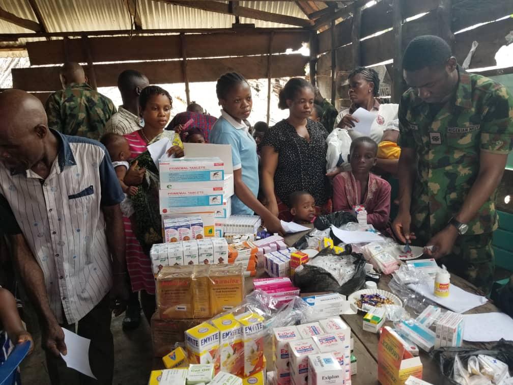 The leader of the team, Commander Vincent Gbaranwi of NNS Victory was accompanied by the Commander of Nigeria Navy Reference Hospital in Calabar, Capt Dominica Adebayo and other officers, Ratings and civilian staff of both units to the host community.
