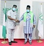 Prince Salih Yakubu, left, congratulates Engr. Dr. Sule Yakubu Bassi, NiDCOM Secretary after the presentation of the award.