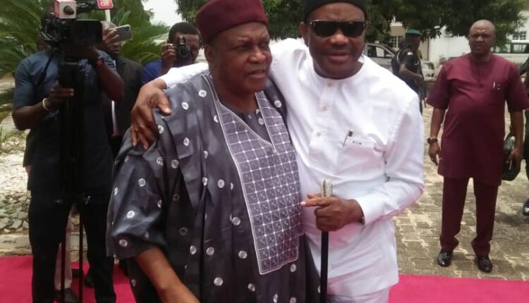 Nyesom Wike with Taraba Governor Darius Ishaku, left, in Jalingo