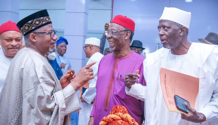 Governor Bala Mohammed of Bauchi State, left, former Minister of Police Affairs, Adamu Waziri, centre, and former Governor of Sokoto State Attahiru Bafarawa at the PDP meeting in Abuja