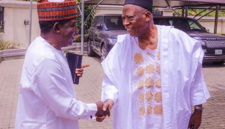 Governor Lalong with new APC national chairman, Senator Abdullahi Adamu, right