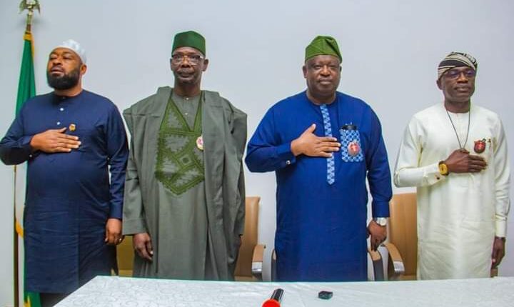 From left, governors Bago of Niger, Engineer Sule of Nasarawa, Muftang of Plateau and Rev. Fr. Alia of Benue when governors of North Central states paid condolence visit to Plateau State over the Christmas eve killings