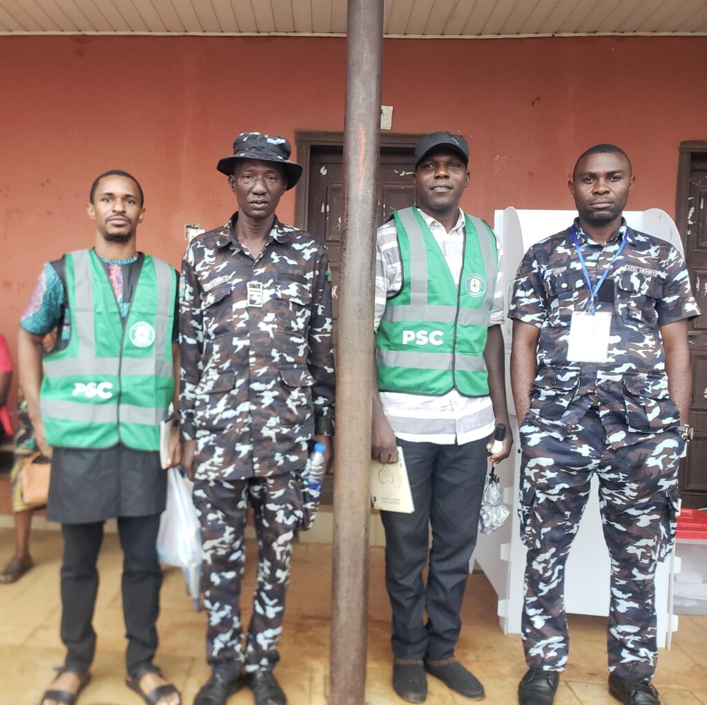 Police Service Commission Monitors noticed the presence of Police officers in almost all the Polling units visited. In Etsako west, East and Central Local Government Areas, most Polling Units had two Police officers that were complemented by personnel of the Nigerian Civil Defence Corps and Nigerian Correctional Services.