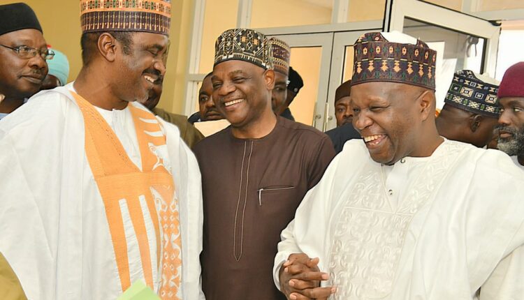 Minister of Transportation, Sa’idu Alkali, TETFund Executive Secretary, Sonny Echono, centre and Gombe Governor Yahaya, right
