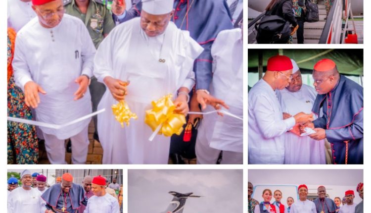 About 350 intending Christian pilgrims from Imo and Abia states were airlifted for the first time in the history of Christian pilgrimage in Imo State to the Holy Land from the Sam Mbakwe International Cargo Airport, Owerri.