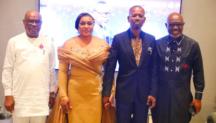 From left: FCT Minister, Barrister Nyesom Wike, Dr (Mrs) George-Kelly Alabo, Hon (Dr) George-Kelly Alabo Pastor Chris Ugoh during the 20th wedding anniversary of Dr and Dr Mrs George Kelly Alabo at the Kings Assembly Church, Port Harcourt on Sunday, December 24, 2023