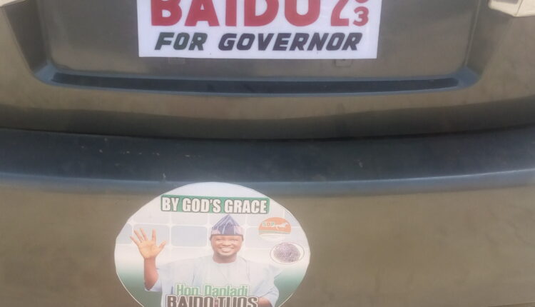 A car with ‘Project Baido for governor’ of SDP plate number spotted in Wukari in southern part of Taraba State on Wednesday. Photo: Anthony Maliki