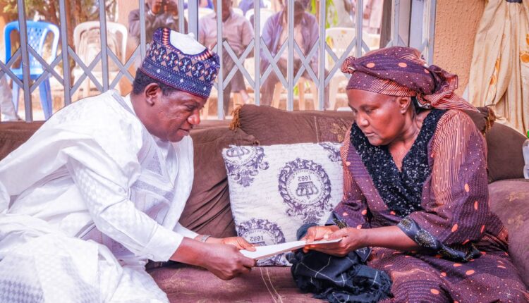 Senator Lalong presents a letter of condolence to the widow of Namang