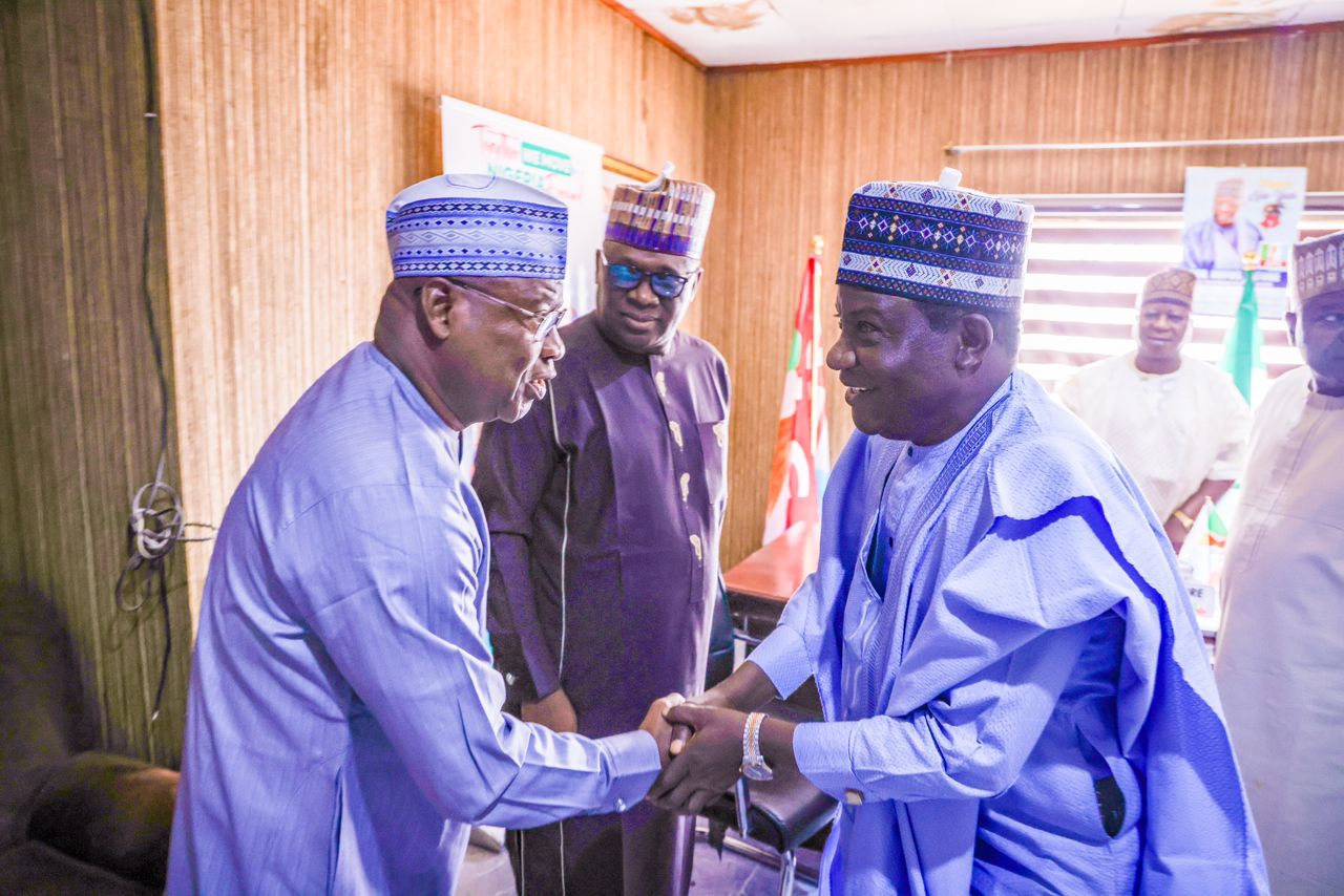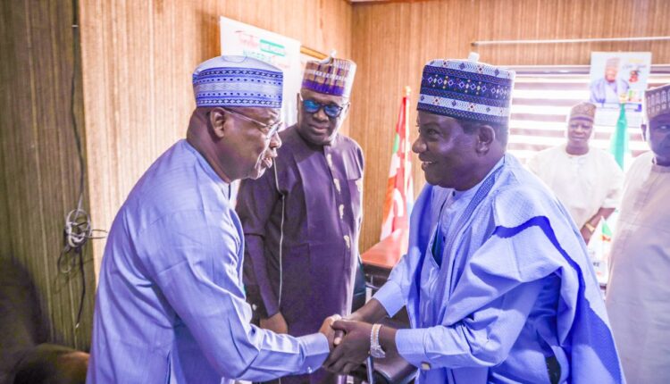 Senator Lalong felicitates with Sir Joseph Ari at 64