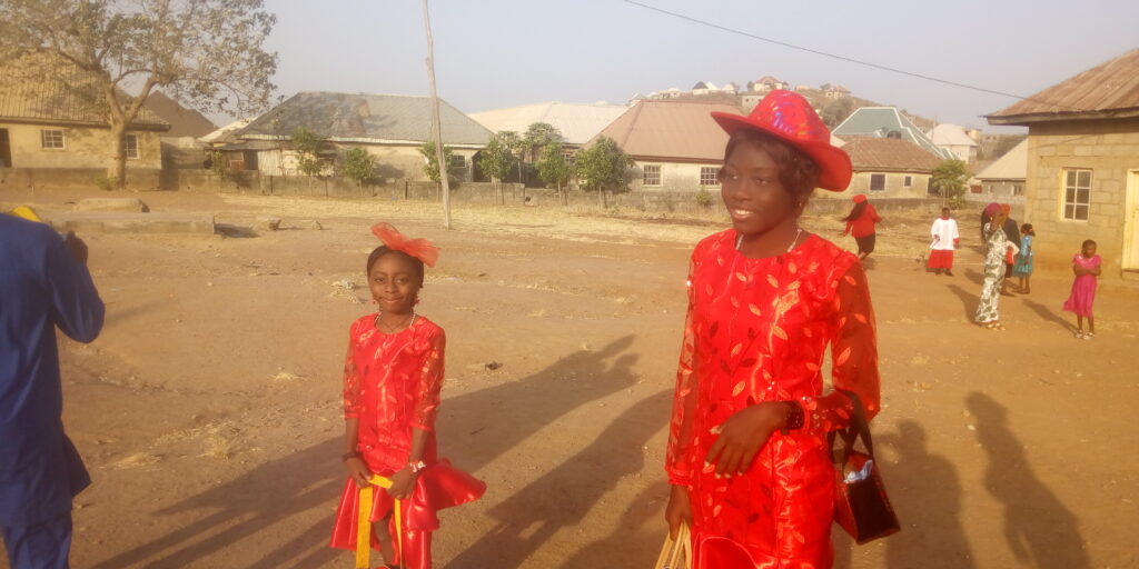 Both children and adults alike in their neat dresses give thanks to God for seeing another Christmas.