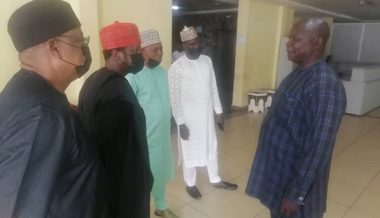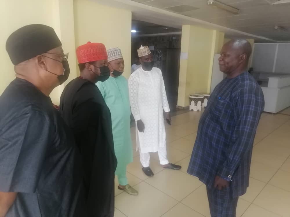 SDP governorship candidate, Hon. Baido interacts with Hon. Simon Loh, former Caretaker Chairman of Karim Lamido Local Government Area, Hon. Gowon Halla Emmanuel, SDP House of Representative hopeful for Ardo-Kola/Karim-Lamido/Lau Federal Constituency, Taraba state and others at National Trauma Centre, National Hospital, Abuja.