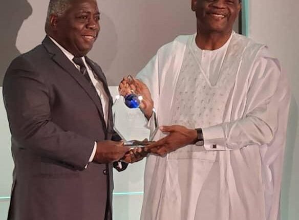 Executive Secretary of TETFund, Architect Sonny Echono, right, receives the award