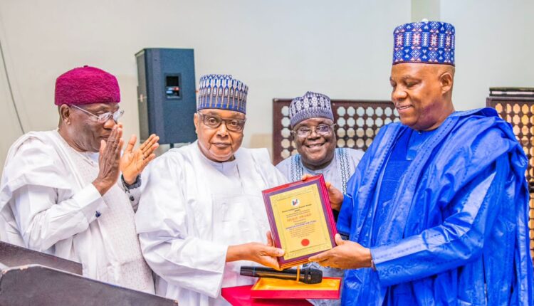 Senator Kashim Shettima, right, being honoured by Borno Indigenes Forum, Abuja