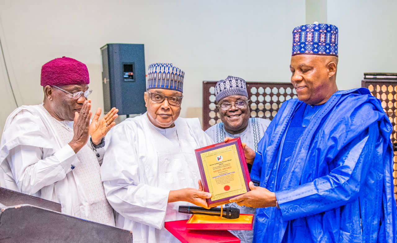 Senator Kashim Shettima, right, being honoured by Borno Indigenes Forum, Abuja