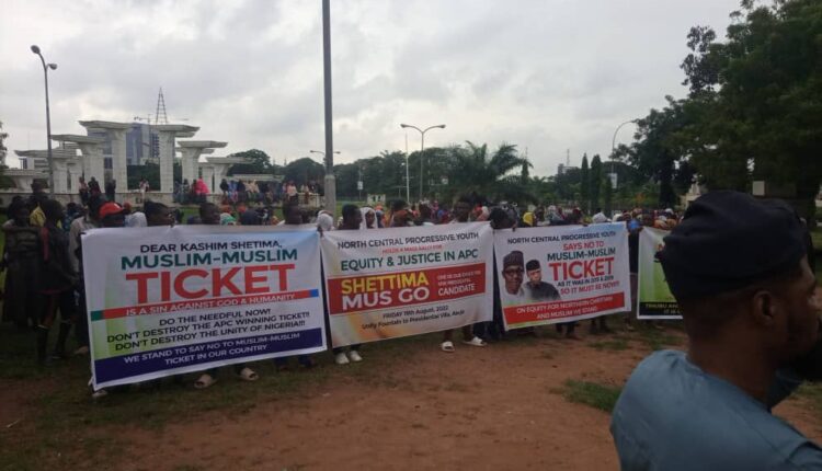 Thousands of youths from the north-central zone, Friday, held a peaceful rally to President Muhammadu Buhari demanding Senator Kassim Shettima’s removal as the All Progressives Congress vice-Presidential candidate.