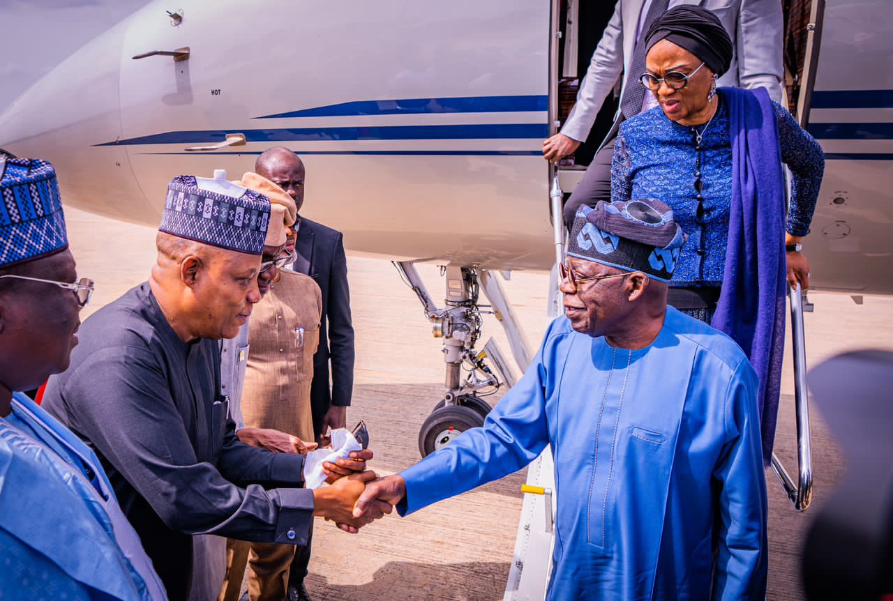 Vice President-elect, Senator Shettima receives President-elect, Asiwaju Tinubu back to Nigeria