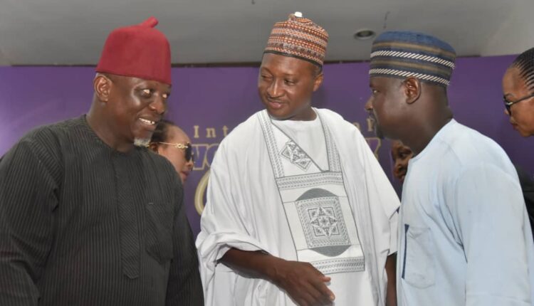 Dr. Abdulrashid Yarima NASME President, Middle, Hon. Gaddafi M Asemanya Jnr, National Publicity Secretary, left, and Bashir Mohammed Rancass Secretary Yobe State NASME, right, during NASME International Women’s Day and AGM in Abuja.