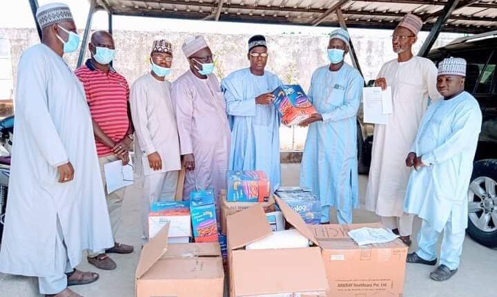 Executive Chairman of BASPHCDA, Dr. Rilwanu Mohammed receives the items