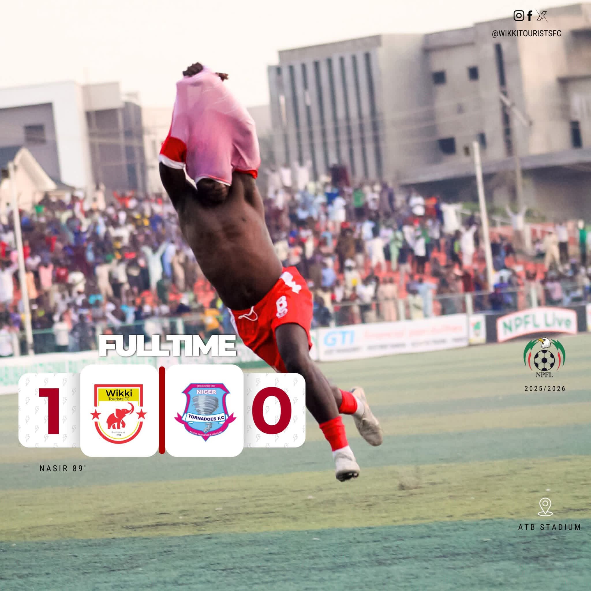 In continuation of the Nigeria Premier Football League (NPFL) 2025/2026 season, Wikki Tourists Football Club of Bauchi, on Sunday beat visiting Niger Tornadoes Football Club of Minna 1–0 in their Match Day 12 encounter held at the Abubakar Tafawa Balewa Stadium, Bauchi.