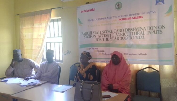SWOFON stakeholders made the call during the presentation of the community scorecard on smallholder women farmers’ access to Agricultural inputs for the year 2019 -2022 organized by Fahimta Women and Youth Development Initiative in collaboration with ActionAid Nigeria and Small Scale Women Farmers Organization (SWOFON), held at the Development Exchange Center (DEC) office in Bauchi.