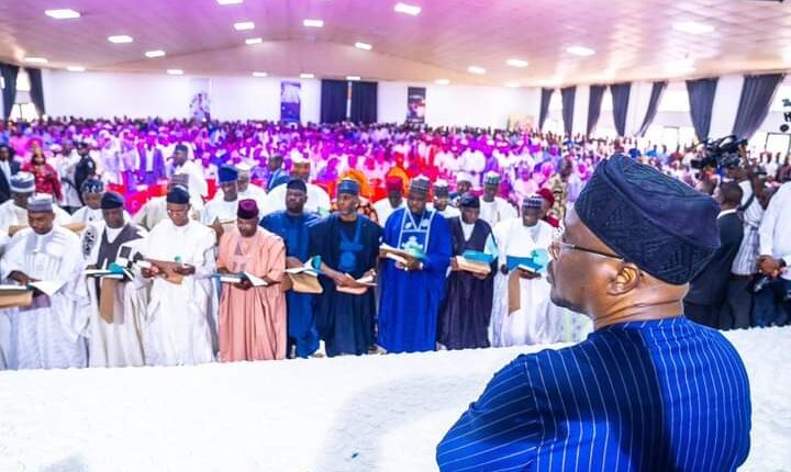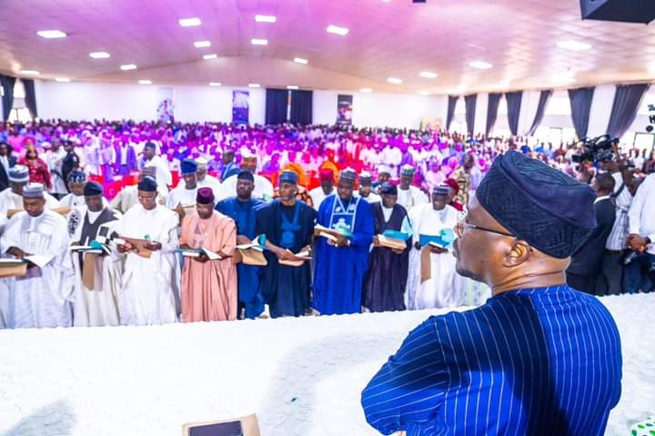 New Adamawa Commissioners sworn in by Governor Fintiri backing camera